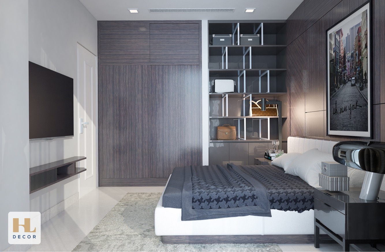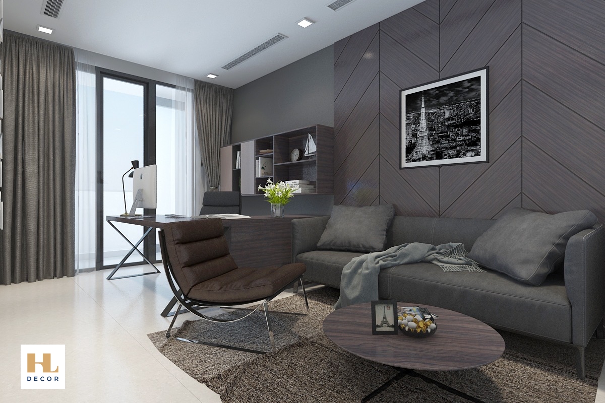 Căn hộ 1 phòng ngủ kết hợp làm việc, thiết kế hiện đại, tông màu sang trọng phù hợp cho doanh nhân, quản lý cấp cao, chuyên gia đến công tác và làm việc tại Tp. Hồ Chí Minh.